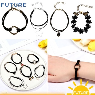 Vòng Tay Màu Đen Phối Ren Hoa Có Mặt Dây Phong Cách Gothic Thời Trang Cho Nữ