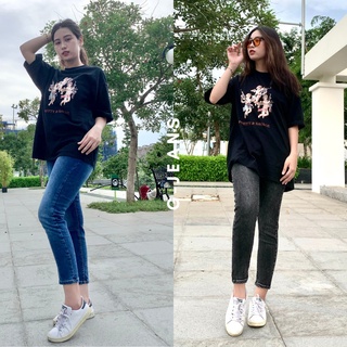 Quần jean nữ lưng cao màu Đen- Xám bigisze [48-105]kg GJEANS, quần bò ôm cạp cao co giãn skinny jeans basic QJA555