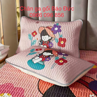 Bộ ga gối bo chun cotton 100% đẹp dày hàng cao cấp hàn quốc