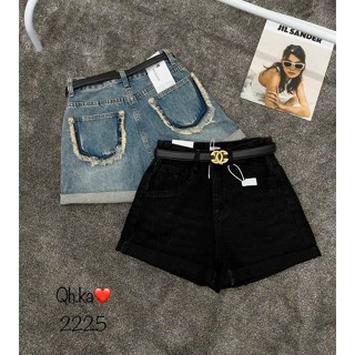 Quần sooc jeans túi sau tua rua kèm đai chữ x hàng QCL1