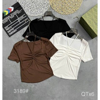 Áo thun cổ vuông dúm ngực dây cổ hàng QC