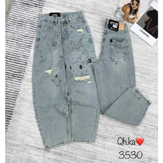 Quần baggy jeans hình mèo hàng QCL1