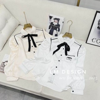 Áo sơmi lụa thêu chữ x cổ nơ