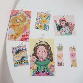 Set 7 card hình họa tiết tranh sơn dầu vẽ bé gái dễ thương dùng trang trí phòng