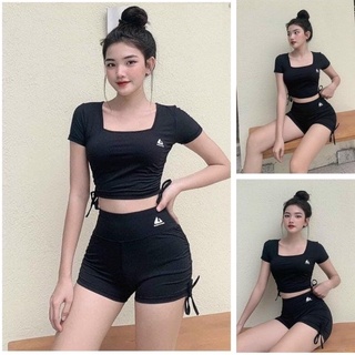 Quần áo tập gym nữ, đồ tập gym nữ cộc tay thắt dây quần đùi 2 lớp chất đẹp thấm hút mồ hôi tốt có kèm mút