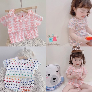 Bộ thun cotton diềm cổ cho bé gái 7-18kg - Mẫu mới