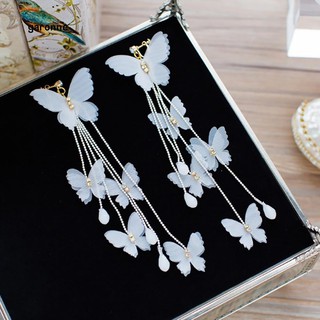 Khuyên Tai Dáng Dài Hình Bướm Phối Tua Rua Thời Trang