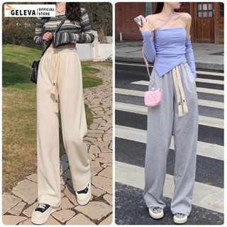 Quần thun ống suông rộng cotton trắng nữ mặc hè vải co giãn dây rút Geleva GE603