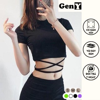 Áo Croptop Nữ Trơn Basic Buộc Dây Hai Bên GenY Áo Kiểu Nữ Cổ Tròn Chất Thun Gân Mịn Siêu Xinh