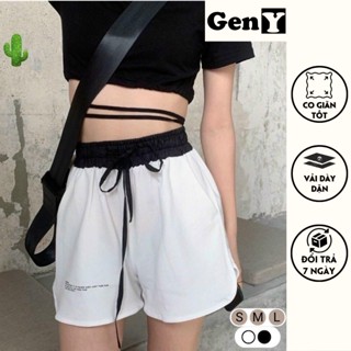 Quần Đùi Nữ Cạp Chun Lưng phối màu GenY - Quần Shorts Nữ in Chữ Đơn Giản Chất Thun Mềm Mịn