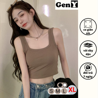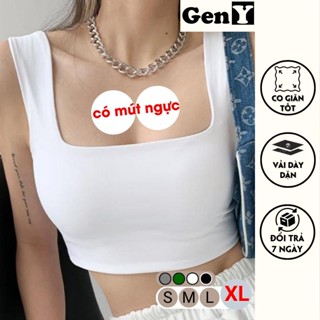 Áo 2 dây bản to có mút ngực cổ vuông GenY Áo croptop hai dây có bigsize ôm body may 2 lớp vải borip dày dặn -2D5-