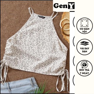 Áo 2 dây nữ dạng yếm hoa nhí GenY - Áo yếm nữ đi biển rút dây 2 bên chất lụa mềm mịn