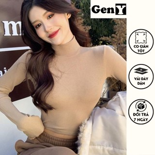 Áo cổ lọ nữ tay dài form croptop hở eo ôm body GenY, Áo nữ thu đông vải thun gân dày dặn mặc giữ ấm tốt -ADT13-