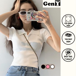 Áo Croptop Ngắn Tay Polo GenY Áo Kiểu Nữ Cổ Sơ Mi Chất Zip co giãn 4 Chiều kiểu dáng hàn quốc thanh lịch -V5-