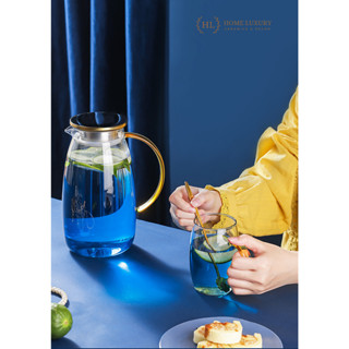 Bình nước thủy tinh Borosilicate Vàng Hoàng Kim 2 Lít | Bình thủy tinh vàng cao cấp chống sock nhiệt dung tích 2000ml