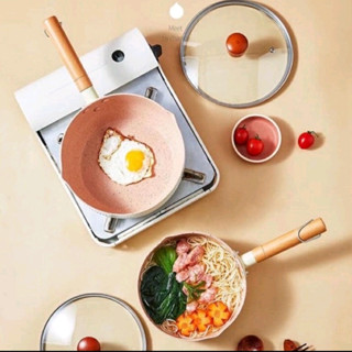 Chảo Chống Dính Bếp Từ Sâu Lòng Vân Đá 18cm Dùng Cho Mọi Loại Bếp Đáy Từ Cao Cấp Cán Gỗ Đủ Màu