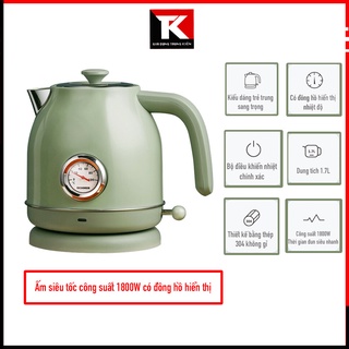 Ấm bình đun nước điện siêu tốc Retro oCooker chất liệu thép không gỉ có đồng hồ hiển thị công suất 1800W - BH 6 tháng