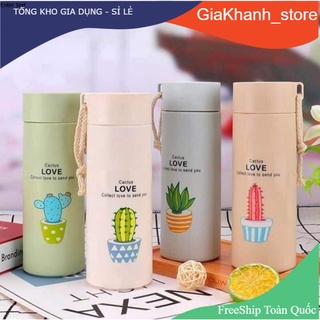 Bình nước in hình xương rồng 400ml lõi thủy tinh bọc vỏ nhựa lúa mạch có dây xách (GIAO MẪU NGẪU NHIÊN) từ DTM Store