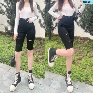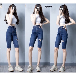 Quần ngố jeans co giãn rách gối lưng cao đẹp QJ196