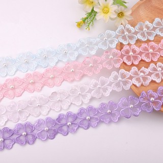 Cuộn Dây Ruy Băng Thêu Ren Đính Hạt Ngọc Trai Trang Trí Quần Áo Dài 1 Yard