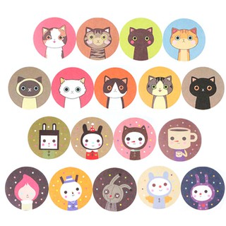 90 Tấm dán hình tròn chống thấm nước hoạ tiết mèo/thỏ đáng yêu