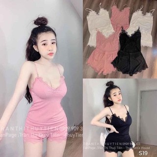 FREESHIP Bộ ngủ 2 dây chất thun tăm phối ren siêu co zãn cực đẹp siêu mát-giadungsieure