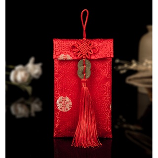 Lì Xì Vải Gấm Đỏ Thêu Hoa Văn May Mắn Đám Cưới, Lễ Hỏi