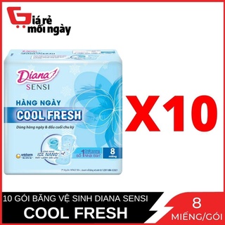 [HÀNG KHUYẾN MÃI] COMBO 10 Gói Băng Vệ Sinh Diana Sensi Hằng Ngày Cool Fresh 8 Miếng x10