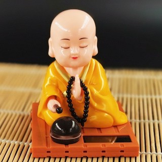 (Loại To) Tượng phật chú tiểu gõ mõ tụng kinh dùng pin nlmt áo cà sa vàng.