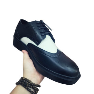 Giày tây nam Derby Wingtip phối màu trắng đen trang trọng, đế khâu chắc chắn, kiểu dáng thời trang