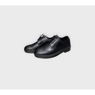 Giày da nam Derby Wingtip màu đen, kiểu dáng trang trọng, đế cao su đúc khâu chắc chắn
