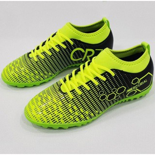 Giày đá bóng giày đá banh sân cỏ nhân tạo MERCURI-X màu xanh chuối dạ quang, đã khâu mũi chắc chắn (Tặng kèm vớ)