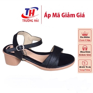 Xăng Đan Nữ Da Bò Trường Hải Màu Màu Đen Gót vuông cao 5cm Đế PU siêu nhẹ SDN0125