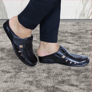 Giày sục nam da bò màu đen Trường Hải Đế Kếp không trơn May đế chắc chắn DN130