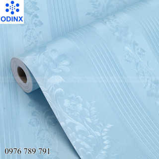 10m giấy dán tường 3d phòng ngủ phòng khách hoa văn nổi MÀU XANH cổ điển châu âu chống thấm nước có keo sẵn Odinx