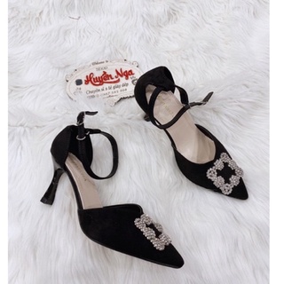 Giày cao gót nữ bịt gót mũi nhọn quai vắt đính đá