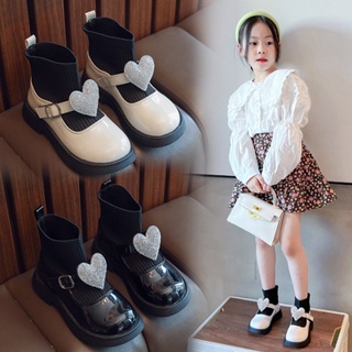 Giày Búp Bê Bé Gái Cổ Chun Len Dáng Bốt Gắn Nơ Tim Bằng Đá Lấp Lánh Phong Cách Hàn Quốc Cho Bé Gái 3 Tuổi Đến 10 Tuổi
