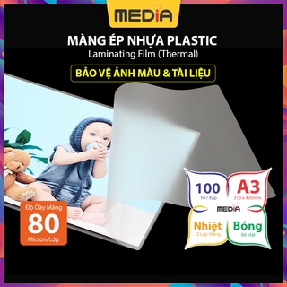 Màng Ép Plastic A3 MEDIA inkjet, Màng Ép Nhựa , Kích Thước 31 x 43cm (A3), Độ Dày 80 Micro, 100 Tờ