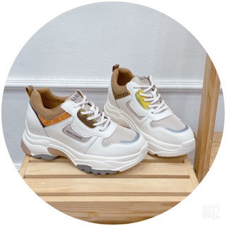 LoH(ẢMH THẬT) Giày Thể Thao Nữ Nâng Đế 6p Nâu Vàng Pha Lưới Da Mềm Êm Fullbox Cao Cấp