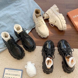 Giày oxford đế cao 6cm buộc dây hai màu đen trắng bóng thời trang
