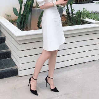 Giày Sandal Nữ BBS49 Mũi Vuông 9cm Gót Đẹp Hàng Sang Chảnh 2 Màu Trắng Và Đen Trend 2022