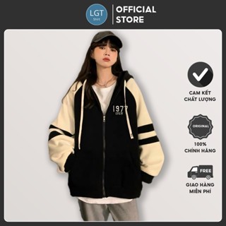 Áo khoác Hoodie nữ zip dây kéo in chữ làm điểm nhấn kiểu dáng trẻ trung năng động