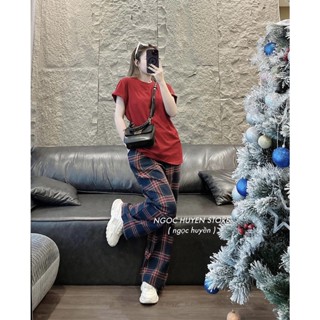 FREESHIP Sét bộ đồ nữ áo thun cotton mix quần bố caro ống rộng năng động trẻ trung GKM