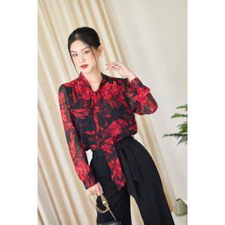 Áo Sơ Mi Nữ Họa Tiết Độc Đáo GILLEE Voan Tay Dài FAS252