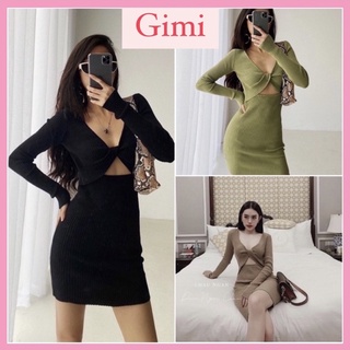ĐẦM BODY XOẮN VÁY BODY MẶC 2 KIỂU TAY DÀI CHẤT LEN TĂM CAO CẤPGIMI