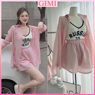 SET 3 MÓN ÁO CROPTOP QUẦN SHORT KÈM ÁO SƠMI VOAN TƠ XDGIMI( Kèm ảnh thật)
