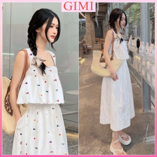 SET ÁO BABYDOLL XÔ REN TRẮNG KÈM CHÂN VÁY MAXI XOÈ THÊU KTGIMI (Kèm ảnh thật)