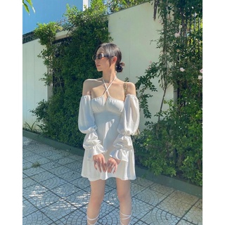 [ SẴN MÀU XANH/TRẮNG] ĐẦM TRỄ VAI TAY DÀI DÂY CỔ YẾM CUTOUT LƯNG KTGIMI ( Kèm ảnh thật)