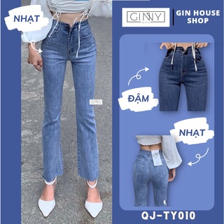 Quần jean co giãn ống đứng phối viền 2 bên TY-09 GINNY trendy ống rộng siêu đẹp | GinHouseShop