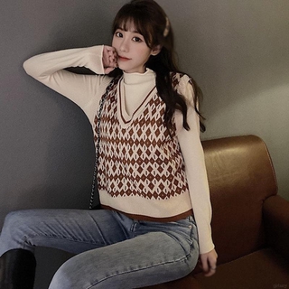 Áo len nữ sát nách cổ chữ V phong cách Hàn Quốc retro